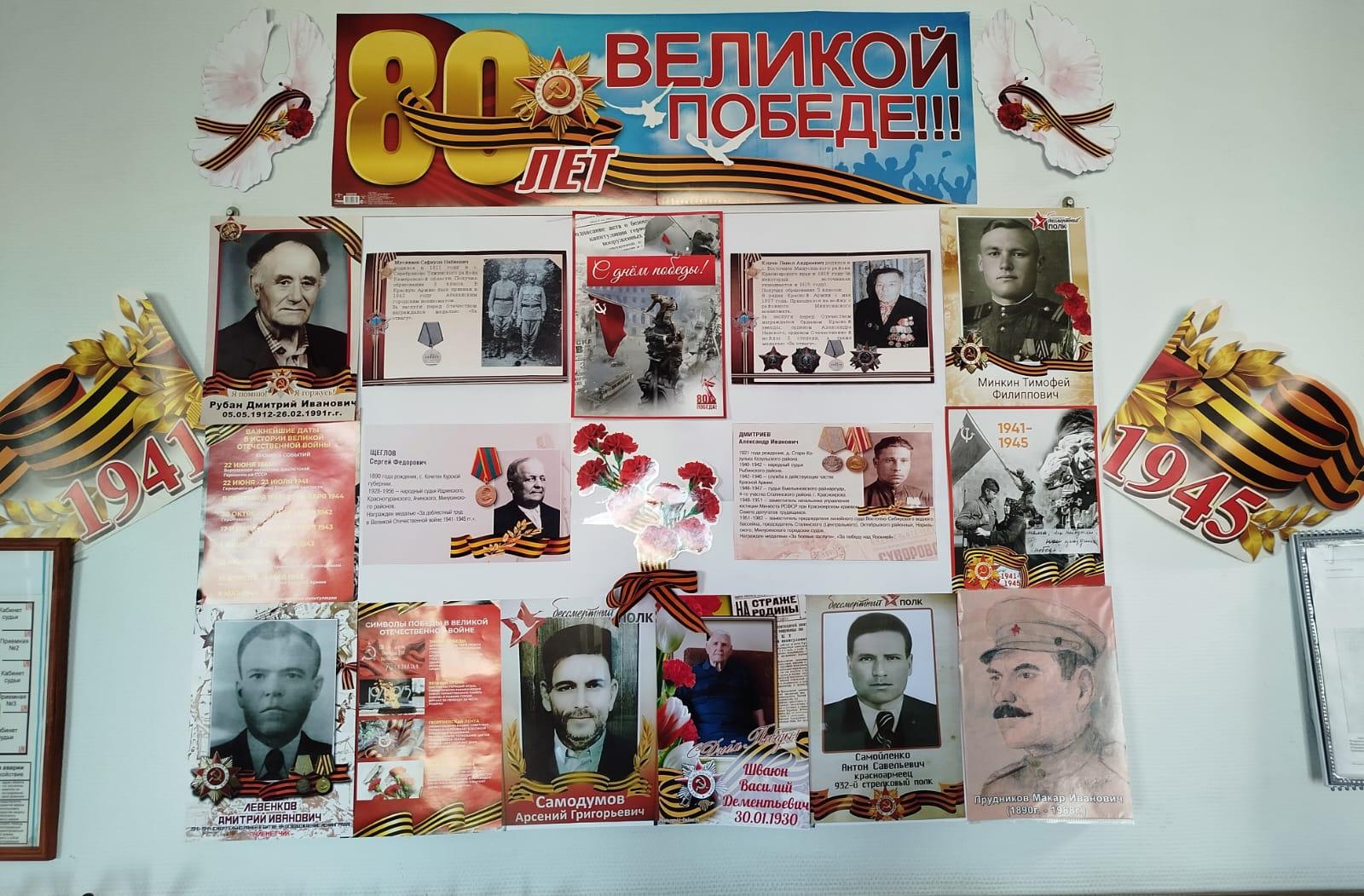 | День Победы - это боль и слезы радости, это память сердца, которую бережно хранит каждая семья. Это то, что объединяет нас и делает непобедимыми перед лицом любых испытаний. В числе участников Великой Отечественной войны есть родственники работников Минусинского городского суда. Благодаря предоставленной работниками суда информации мы сегодня можем почтить память их родных и близких. Судьи и сотрудники Минусинского городского суда отдали дань уважения всем солдатам, не вернувшимся с войны, возложили цветы к монументу памяти участникам Великой Отечественной войны, погибшим за Родину. Память о тех, кто не вернулся будет всегда в наших сердцах. ![]() |